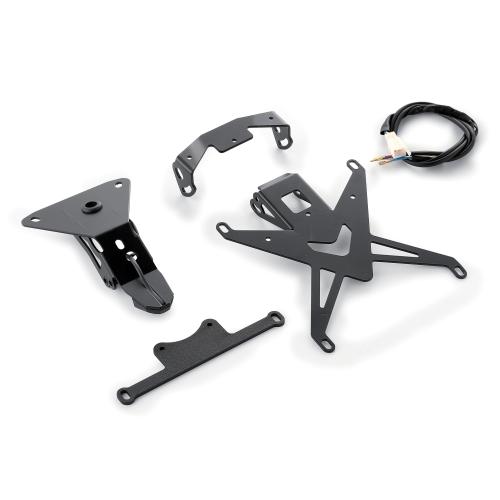 En acier découpé au laser. Avec éclairage de plaque d’immatriculation à LED blanches. Donne à la moto un look plus élégant et plus sportif. POUR USAGE SUR PISTE UNIQUEMENT.