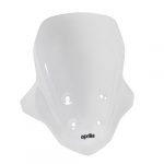 L’écran transparent offre une protection efficace contre les intempéries tout en maintenant une excellente visibilité. Protège-mains intégré. Testé et approuvé par Piaggio. Logo Aprilia.
