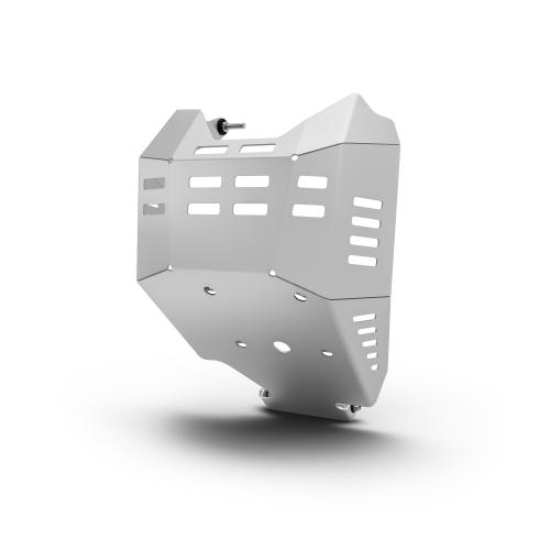 Plaque de protection en aluminium haute résistance qui offre une excellente protection contre les pierres sur le collecteur d’échappement et le dessous du moteur lorsque vous roulez sur des routes non pavées ou des surfaces irrégulières.