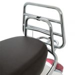 Porte bagages arrière pliant chromé avec logo Vespa. Une étagère rabattable pratique offre une excellente capacité de charge. Un article incontournable qui a toujours été le favori des clients Vespa qui veulent un accessoire unique et original. Ne s’applique pas pour Primavera Touring.