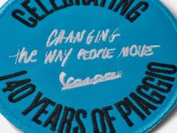 Aimant en forme d’anneau présentant le graphique de célébration des 140 ans de Piaggio et le logo de la Vespa.