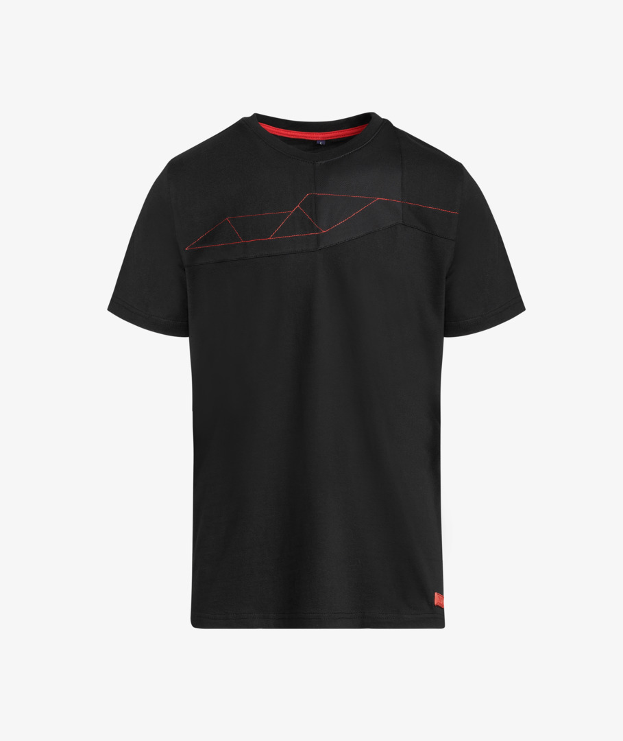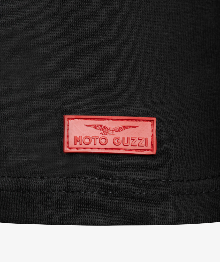 T-shirt en jersey doux 100% coton 160 g/m² qui reprend le design du cadre de la V85TT. Enrichi de détails rouges audacieux, comme la bande anti-transpiration à l’intérieur du cou et l’étiquette Moto Guzzi, c’est un incontournable pour profiter au maximum de votre prochain voyage.