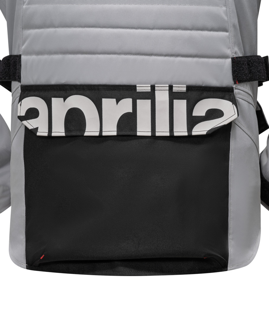 La veste Aprilia Experience est une veste d’aventure/tourisme conçue pour s’adapter à toutes les saisons. Elle est imperméable et, grâce à sa conception, offre une mobilité confortable, ergonomique, élégante et minimaliste pour garantir un confort tout au long de l’année. La veste est équipée d’une doublure thermique amovible, pour vous garder au chaud pendant les sorties matinales ou nocturnes les plus froides, mais aussi, grâce à son tissu imperméable, vous garantit une protection pendant les jours pluvieux et humides. Elle est fabriquée en combinant les demandes d’Aprilia et l’expérience spécifique d’Alpinestars, reconnue dans le monde des vêtements techniques. Caractéristiques : La doublure imperméable fixe offre d’excellentes performances par temps pluvieux Système de ventilation offrant une plus grande surface d’échange d’air, améliorant la respirabilité et offrant un confort de conduite optimal La veste a une coupe confortable avec des bras préformés et des coudes ergonomiques pour une excellente liberté de mouvement La poche cargo ergonomique, avec extension intégrée, offre une capacité de rangement accrue, une grande utilité, une commodité et un look moderne et élégant La doublure thermique amovible, 80 g pour le torse et 80 g pour les manches, avec des boutons-pression pour la fixer à la veste, peut être rangée dans la grande poche cargo arrière de la veste pour une véritable polyvalence Protections : Préparée pour accueillir l’airbag Protections CE niveau 1 Nucleon Flex Plus aux coudes et aux épaules pour une protection efficace contre les chocs Conformément à la législation européenne, le marquage CE est une exigence de conformité pour la commercialisation de ce produit Les normes suivantes s’appliquent à ce produit : – Vêtement de moto entièrement certifié CE selon CE – Catégorie II EN17092-4:2020 – Classe A – Nucleon flex plus Niveau 1, Catégorie II EN17092-6:2020 – Classe C protection contre les chocs