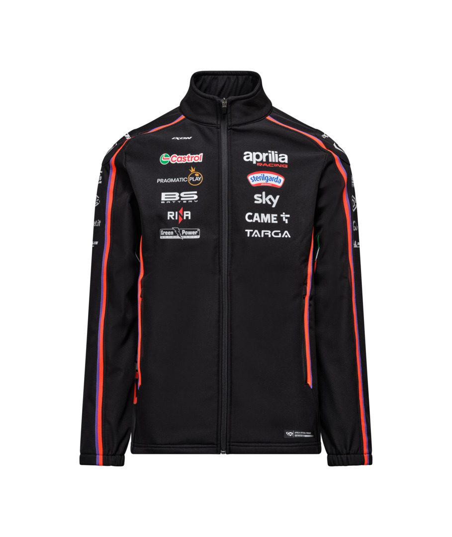 Affichez votre soutien à Aprilia Racing avec la veste Aprilia Racing MotoGP Replica Softshell pour homme. Cette veste softshell noire et rouge néon est une réplique exacte du modèle porté par l’équipe Aprilia Racing en 2025 en MotoGP. Cette softshell offre une coupe confortable avec un matériau technique inspiré de l’équipement de course. Les graphismes de la softshell s’inspirent de la livrée 2025 des motos Aprilia Racing, ajoutant une touche unique à votre tenue de course. Le dos de la softshell affiche fièrement le drapeau italien, symbole du riche héritage et de l’esprit de compétition qu’incarne Aprilia Racing.